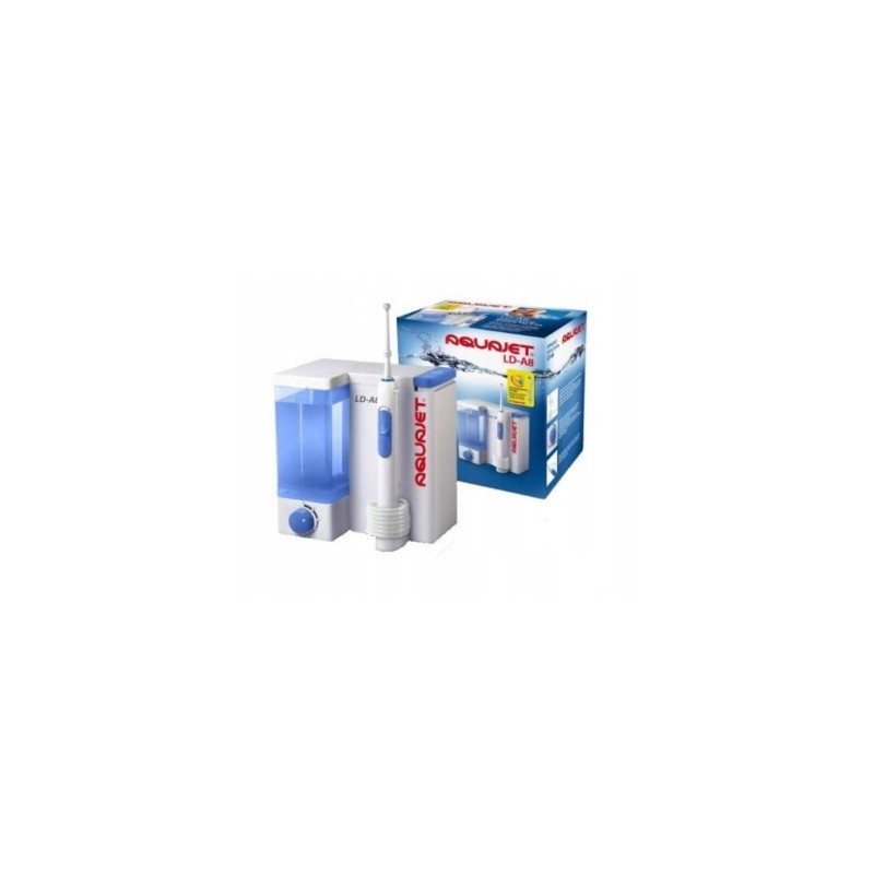 Irygator AQUAJET to irygator dentystyczny, który skutecznie czyści przestrzenie międzyzębowe oraz błonę śluzową jamy ustnej. AQUAJET, model LD-A8 posiada mocny, pulsujący strumień punktowy, który dokładnie i skutecznie usuwa resztki jedzenia z miejsc trudnodostępnych, tj. przestrzenie międzyzębowe czy linia dziąsłowa. Irygacja to także dobroczynny masaż dziąseł, który poprawia krążenie i skutecznie wzmacnia dziąsła. Niezastąpiony produkt w leczeniu paradontozy, a także w leczeniu ortodontycznym oraz do pielęgnacji aparatu ortodontycznego, implantów, mostów, itp.