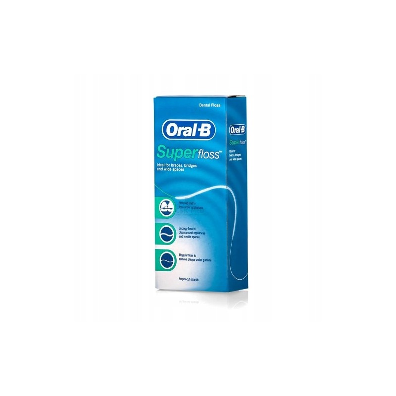Nić Super Floss idealnie nadaje się do czyszczenia aparatów ortodontycznych, mostów i większych przestrzeni międzyzębowych. Jej trzy główne elementy - usztywniony koniec, puszysta część oraz standardowa nić - pomagają uzyskać uczucie maksymalnej świeżości.